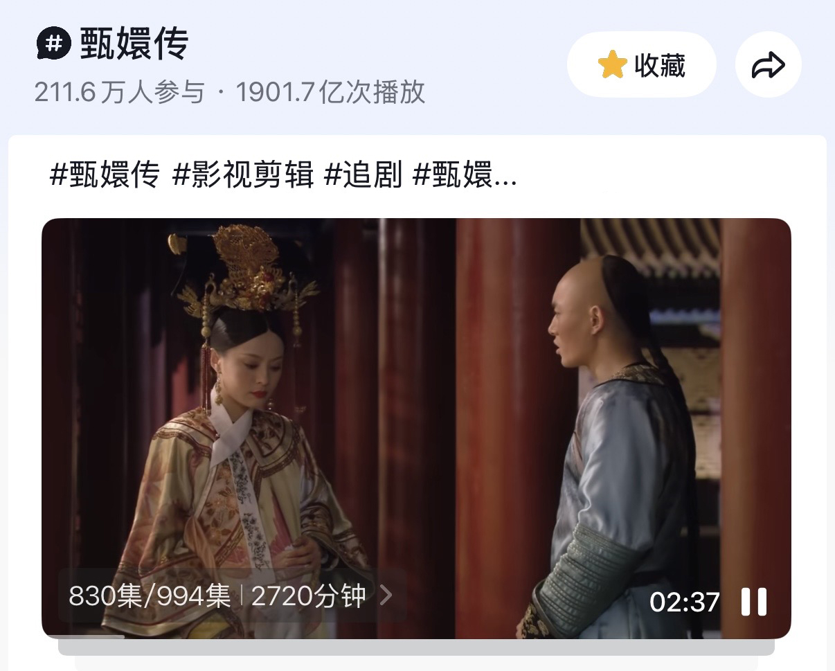 《甄嬛传》能持续保持热度,全网十万+级别的二创达人和抖音超1901亿的抖音播放量功不可没。乐视对此的态度堪称“人间清醒”:不指挥,只搭台;不设限,只赋能。