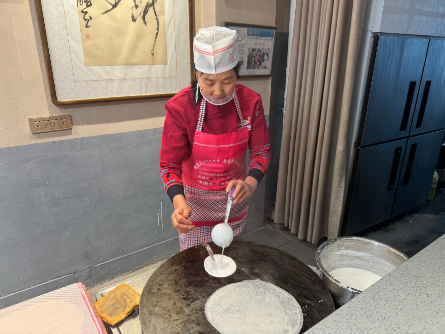 近年来,越来越多的人开始关注地方特色美食,而面对地方特色美食需创新才能“破圈”的关键问题,刘璐迎难而上,接下了清涧煎饼传承与创新这个任重而道远的任务,“为了将清涧煎饼更好地推广出去,我通过非遗创新煎饼宴、开展中小学生非遗体验课等方式,让更多的人了解清涧煎饼,熟知陕北非遗文化。”刘璐自豪地对记者说。