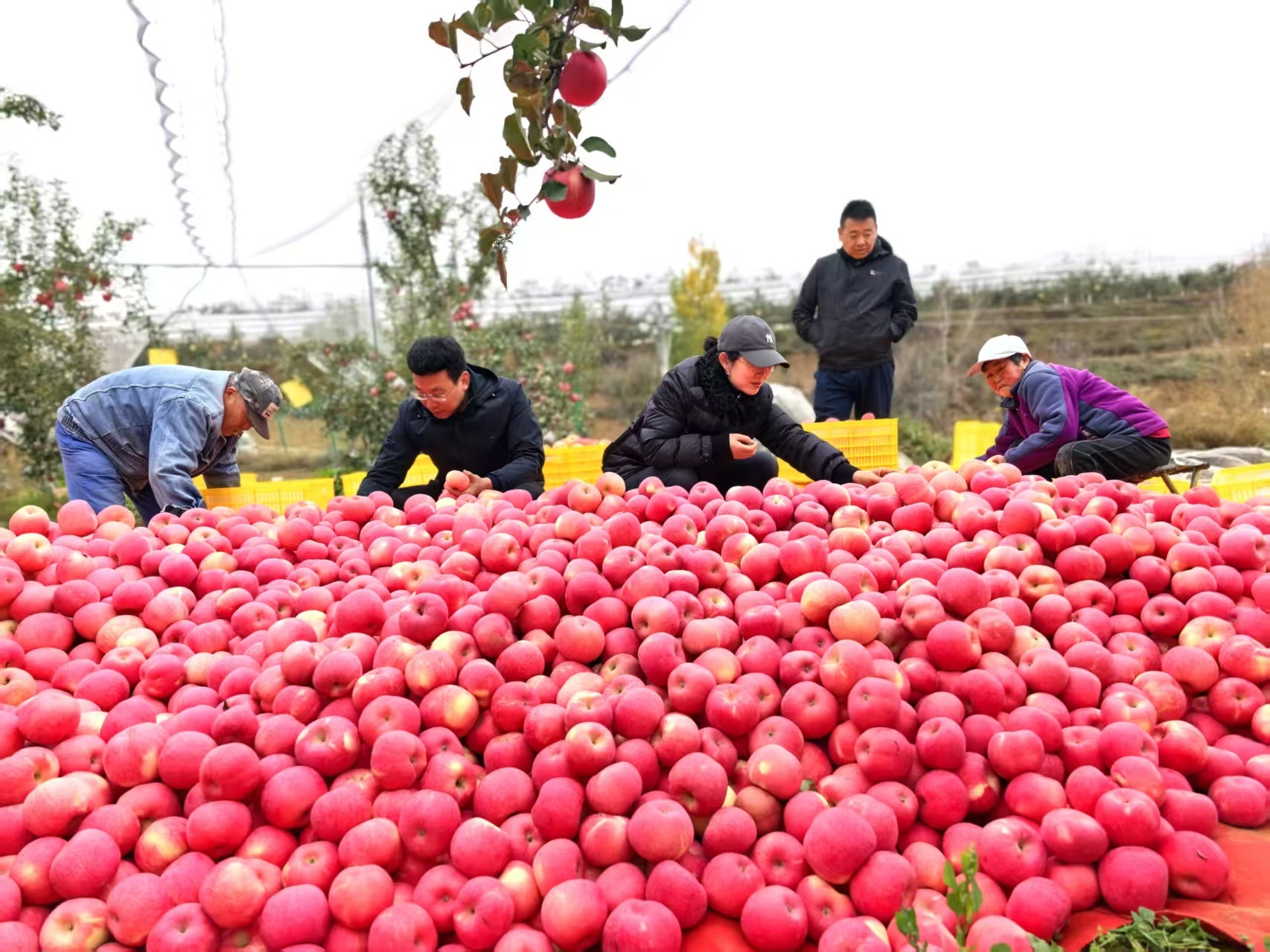 为了让果农种得放心、养得省心,村里还组建了18人的苹果技术服务队,提供技术指导和劳务托管服务,外出务工的农户再也不用操心家里的果园。此外,村里以奖代补建成360亩防雹网,在肥料、果袋、农药等物资上给予补贴,还配套修建了3公里砖铺道路,让果园管护条件大幅提升。