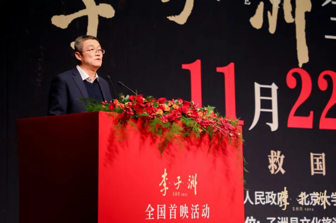 中共子洲县委书记封杰在致辞中表示,李子洲这个名字是融入子洲人民血脉的精神坐标,将李子洲的革命故事搬上银幕,并选择在其革命起点北京大学进行首映,意义特殊。他坚信,这部影片必将以星火燎原之势,让李子洲的革命精神走进全国人民的心里。