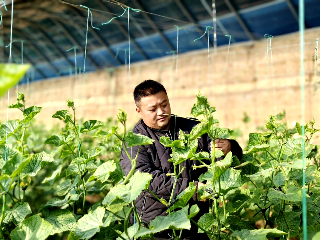 “我种了两棚黄瓜,一年种两茬,每棚能产3000公斤,近期订单不断,几乎每天都在棚里忙碌,要采摘、装箱、搬运,还要给米脂县商铺送货,一年下来能收入5万多元。”种植户赵永林说。