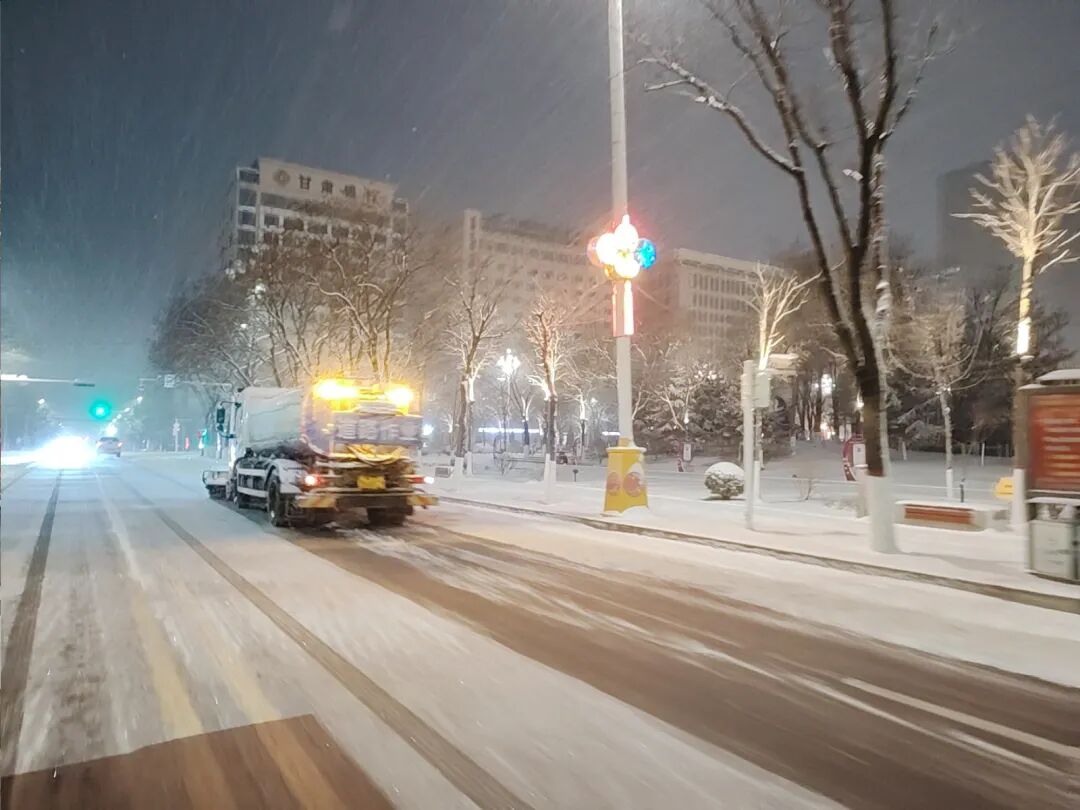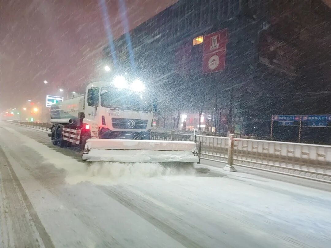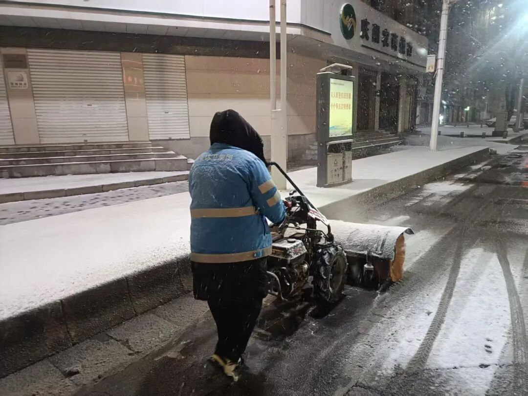本报讯(白成官)12月31日,西峰区迎来降雪天气。西峰环卫部门从凌晨3点开始,对城区道路抛洒融雪剂,全面开展“人机结合”除雪作业。累计出动大型滚刷车13台、推雪铲车6台、融雪剂撒布机3台;投入大型吹风机1台、燃油吹风机40台、人工除雪机40台、人工推雪板700个。目前,除雪作业仍在紧张进行中……