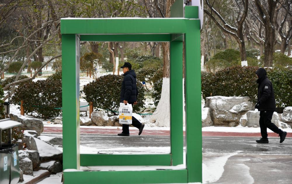 从1月18日开始,受冷空气影响,山东济南出现降雪天气。(新华社记者 徐速绘 摄)