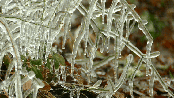 冻雨落在电线、树枝、地面上会迅速结冰,形成光滑的冰层。这些冰层可能: