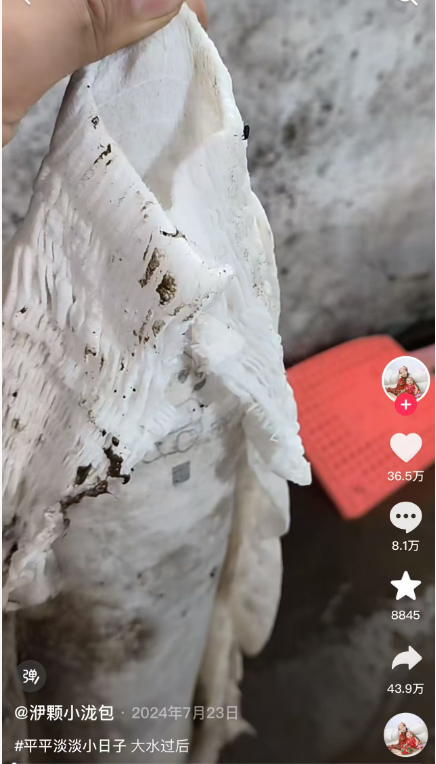事情的起因是,一位东北吉林的博主在2024年7月中旬,家中遭遇洪灾,积水漫进屋内,家里被大量积水淹没。家中儿子日常使用的蓓秀纸尿裤意外泡进水里,没想到蓓秀纸尿裤竟上演了“吸水奇迹”,小小的纸尿裤吸满水后胀成了“大蟒蛇”。事后,博主将这一意外发现拍成视频分享到抖音,还配文“必须得给我儿子尿不湿打个广告,太吸水了”。