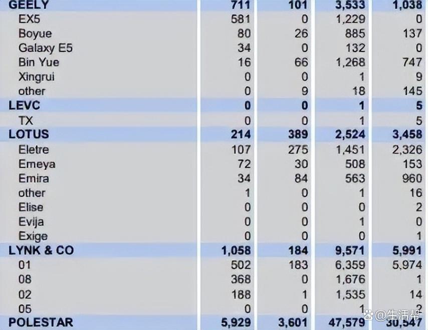 值得一提的是,排名第五的品牌是在中国市场声量微弱的极星,其销量增长56%至47579辆。包含极星、极氪和领克在内,吉利销量达6.8万辆,同比增长58%。