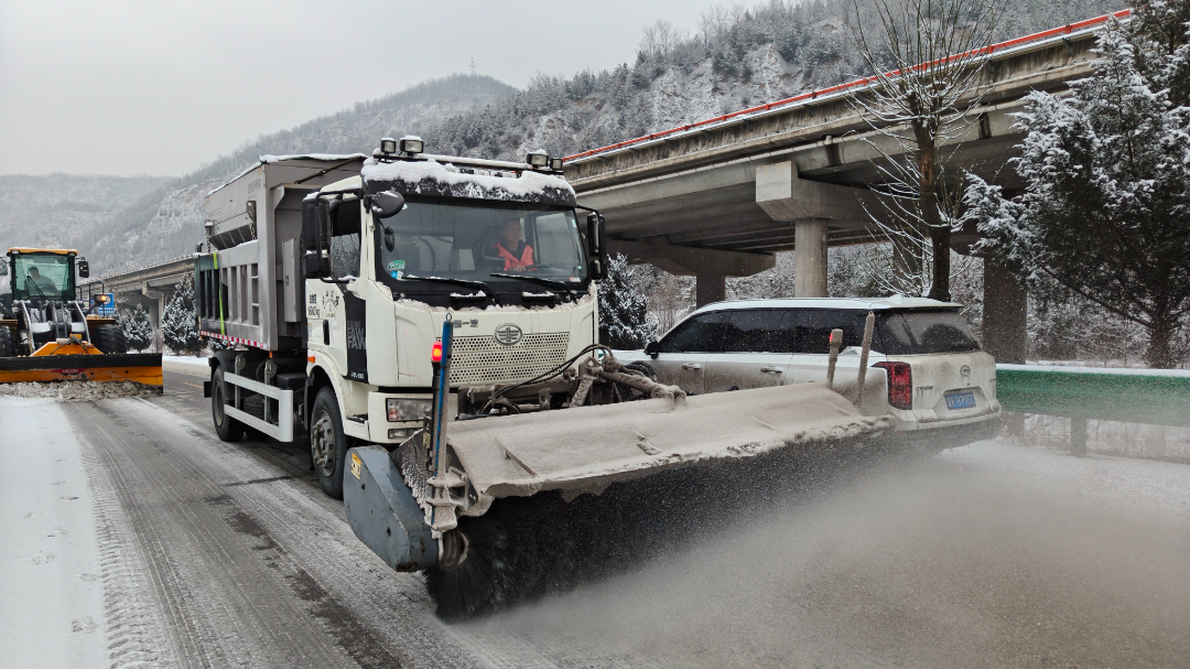 “桥梁、隧道、陡坡、弯道这些路段易结冰、易打滑,是我们的重点防护区域,必须做到机械不间断作业、人员无缝隙值守。” 延川县公路段段长陈柏杨介绍说,此次除雪采取“机械为主、人工辅助”的作业模式,调度除雪铲车、撒布机等设备高效联动,快速清除主干道积雪,同时依托智慧平台实时推送路况信息,让群众精准掌握出行参考。
