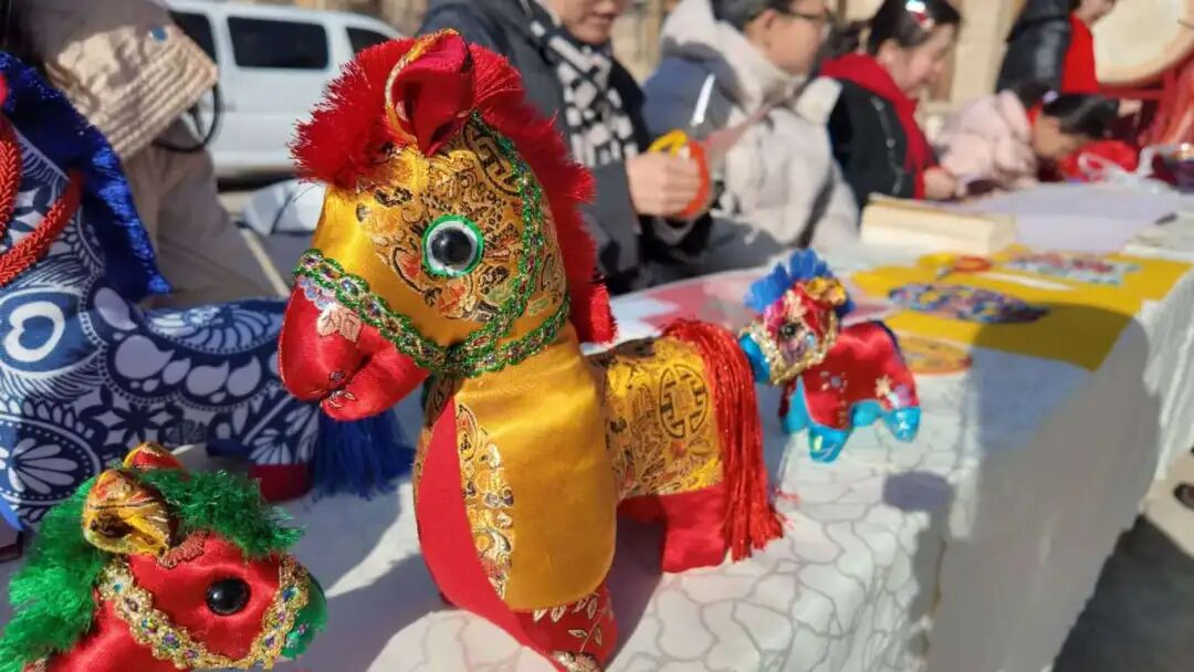 在随后的互动环节,几位书法爱好者铺纸挥毫,为现场家庭书写春联、赠送“福”字。大家围聚桌前,聚精会神地观看墨迹如何流转成一笔笔吉祥如意的文字。一旁的展台上,非遗传承人带来的剪纸和手工作品琳琅满目,红彤彤的窗花、精巧的小马布艺,引得人们驻足欣赏、赞叹不已。