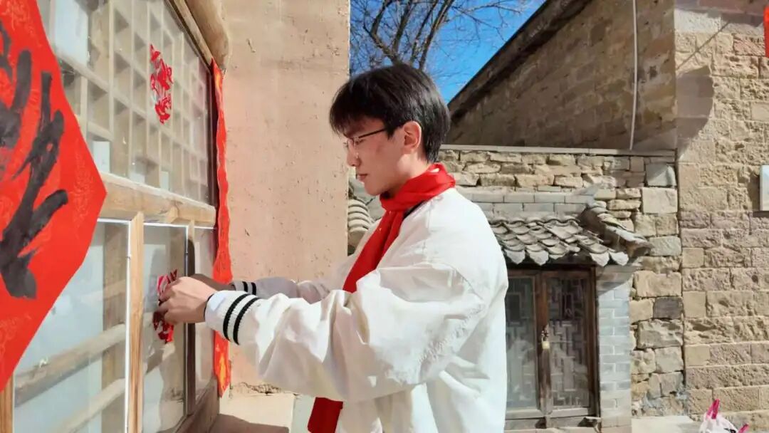 活动尾声,大家将刚刚写好的春联与“福”字一起贴上门楣。“福倒了!”“福到了!”欢笑声此起彼伏,大红春联映红了院落,也映暖了人心。