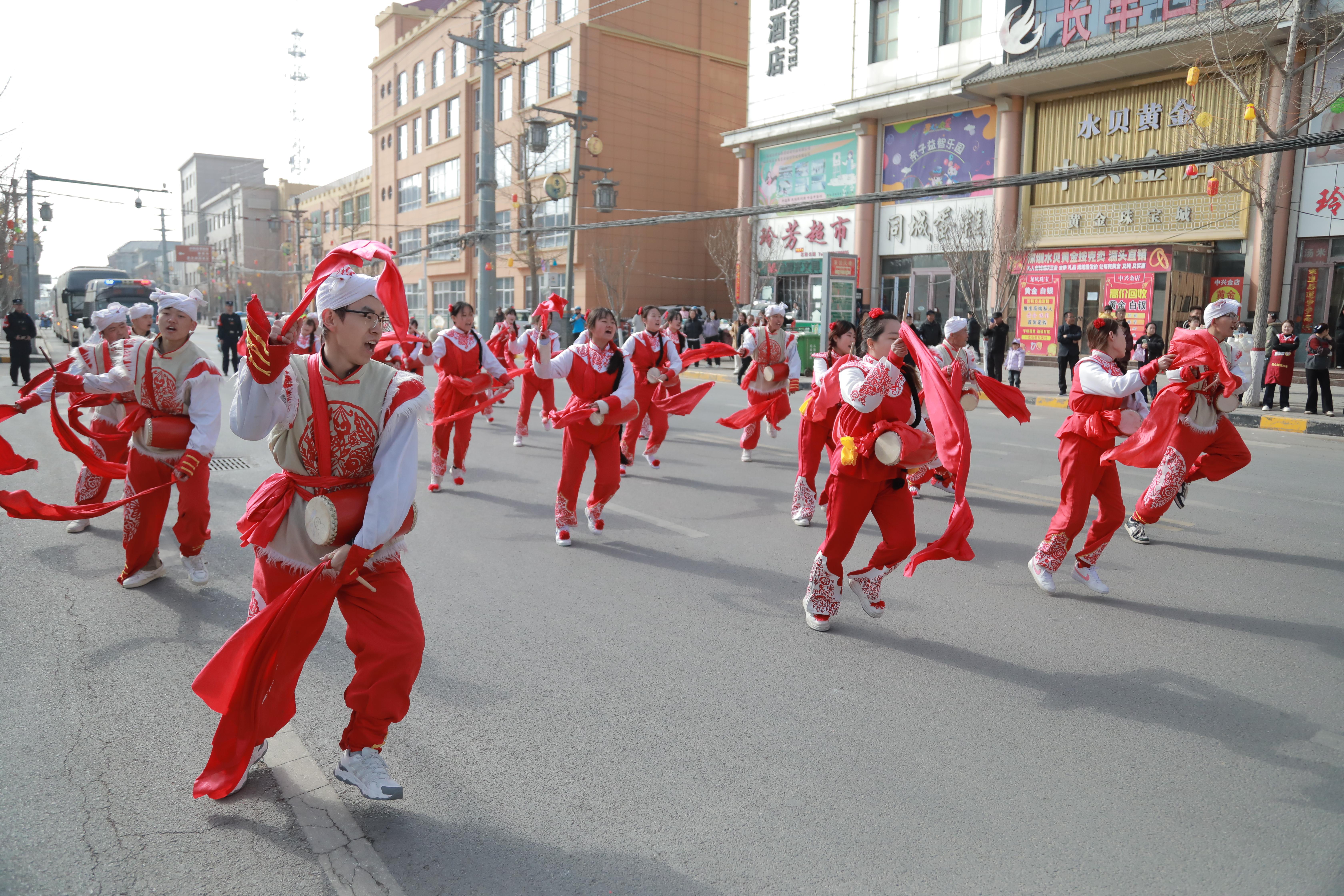 春节期间,庆城非遗民俗与特色演艺好戏连台,南北文化交融碰撞尽显独特魅力。从正月初三至初八,广东潮汕国家级非遗英歌舞与陕北安塞腰鼓作为核心展演项目,每日分时段亮相街头广场,中华战舞的刚劲与黄土雄风的豪迈相得益彰,铿锵锣鼓、灵动舞姿引得市民游客驻足喝彩、争相打卡。