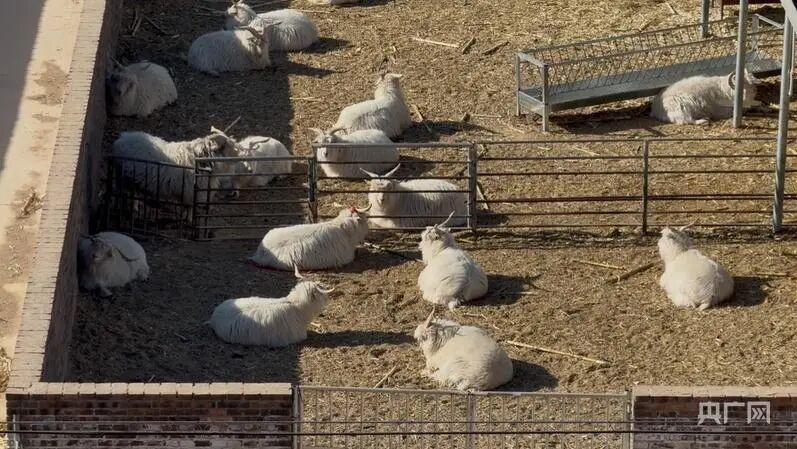 陕西省榆林市横山区马家梁村,标准化养殖小区中的陕北白绒山羊正在休憩(央广网记者 陈锵 摄)