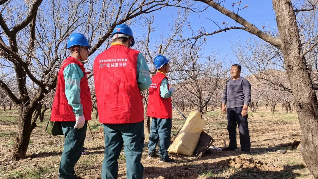 春耕关键时节,也是果农施肥灌溉的用电高峰,陕北春季大风多、天干物燥,线路安全隐患不容忽视。“马强,往东南方向再飞一段,看看跨越杏林的那档线有没有挂上异物。”服务队队员马强操控着无人机腾空而起,在空中盘旋,电线上的一片塑料薄膜、一根断线的风筝都可能成为线路跳闸的隐患。无人机的“鹰眼”穿透花枝缝隙,将杆塔、绝缘子、拉线的情况清晰传回地面。其他人则兵分多路,叩开一户户农家院门,手中的万用表搭上抽水开关、测过住宅基地的电压,把隐患排查做在前头,把用电诉求记在心上,把一张张印着服务热线和安全常识的宣传页递到村民手中。