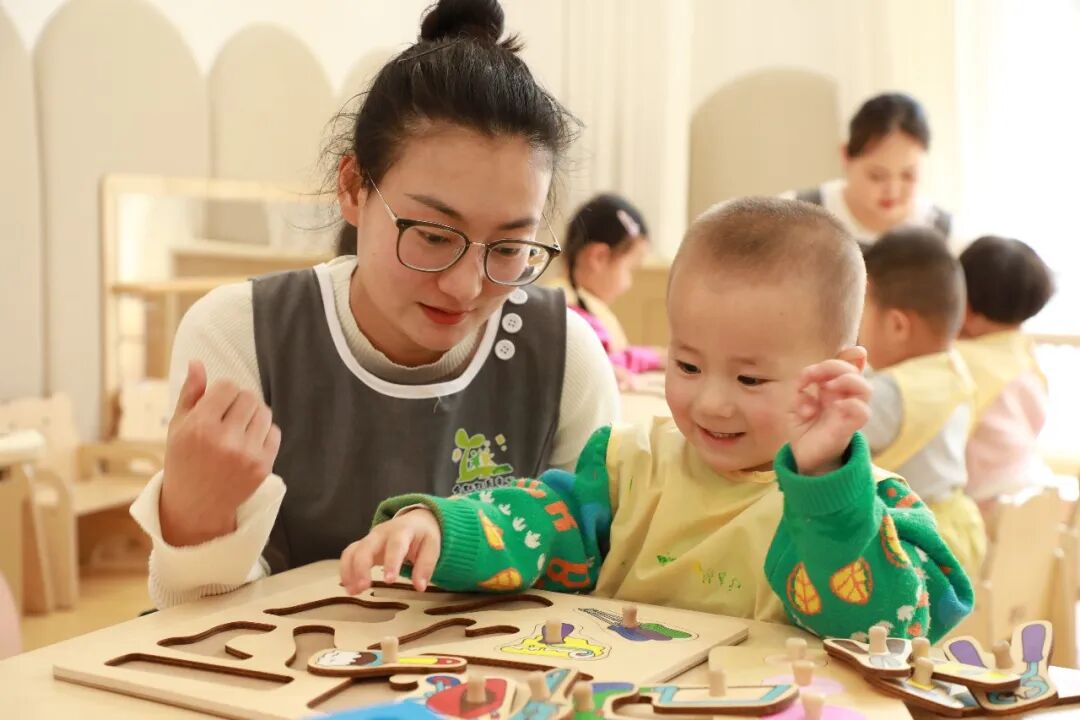 “目前我园设有托小班、托大班共2个,每个班15名宝宝,配备3名保育员老师,采取排队入托的方式,严格落实晨检、接送确认等安全制度。老师持证上岗,不超前教学,侧重生活自理、社交启蒙与全面发展,推行游戏化教学、科学喂养。收费由政府定价,公开透明,坚持普惠不普通、优质不贵,有效减轻家庭育儿负担,全方位守护婴幼儿健康成长,可充分满足周边社区托育需求,让家长托得放心、育得专业、负担得起。”榆林城投普惠托育中心江山赋托育园园长刘单丹说。