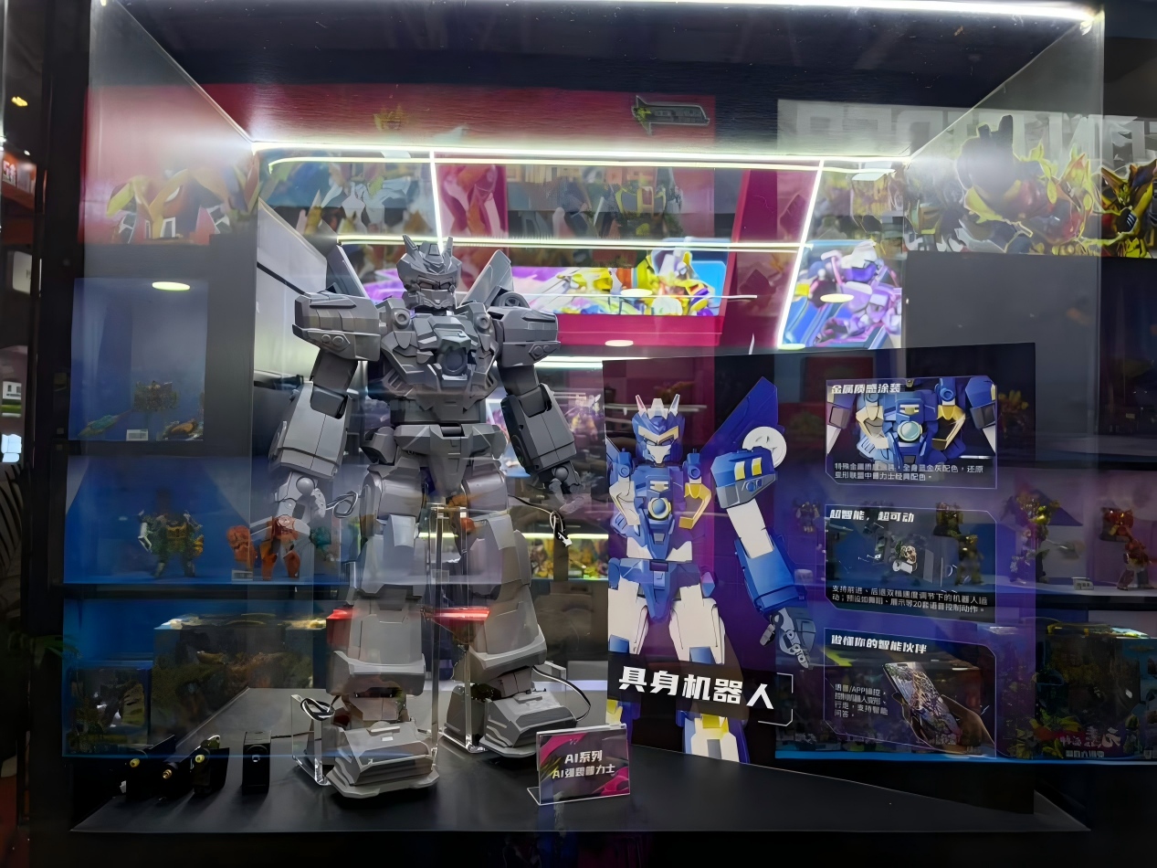 在AI超星普尔达成功的基础上,德馨童娱在2026年深圳玩具展上,揭露了其已规划AI产品四大发展方向,全面推动玩具智能化升级。从动画设定机甲化,机甲形象玩具化,机甲玩具变形功能化,变形玩具AI化,AI玩具机甲化,AI机甲模型化,模型玩具做到具身智能化的逐步转变。