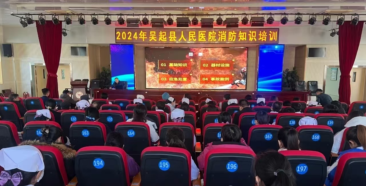 为进一步做好消防安全工作,提升医务人员消防安全意识,增强群众疏散逃生能力,营造平安温馨的就医环境,12月24日下午,吴起县人民医院组织召开2024年消防知识培训会,院党委副书记院长宗德宝,副院长张梅、总会计师雷晓芸及各科室人员、部分保洁人员、住院患者家属参与培训。